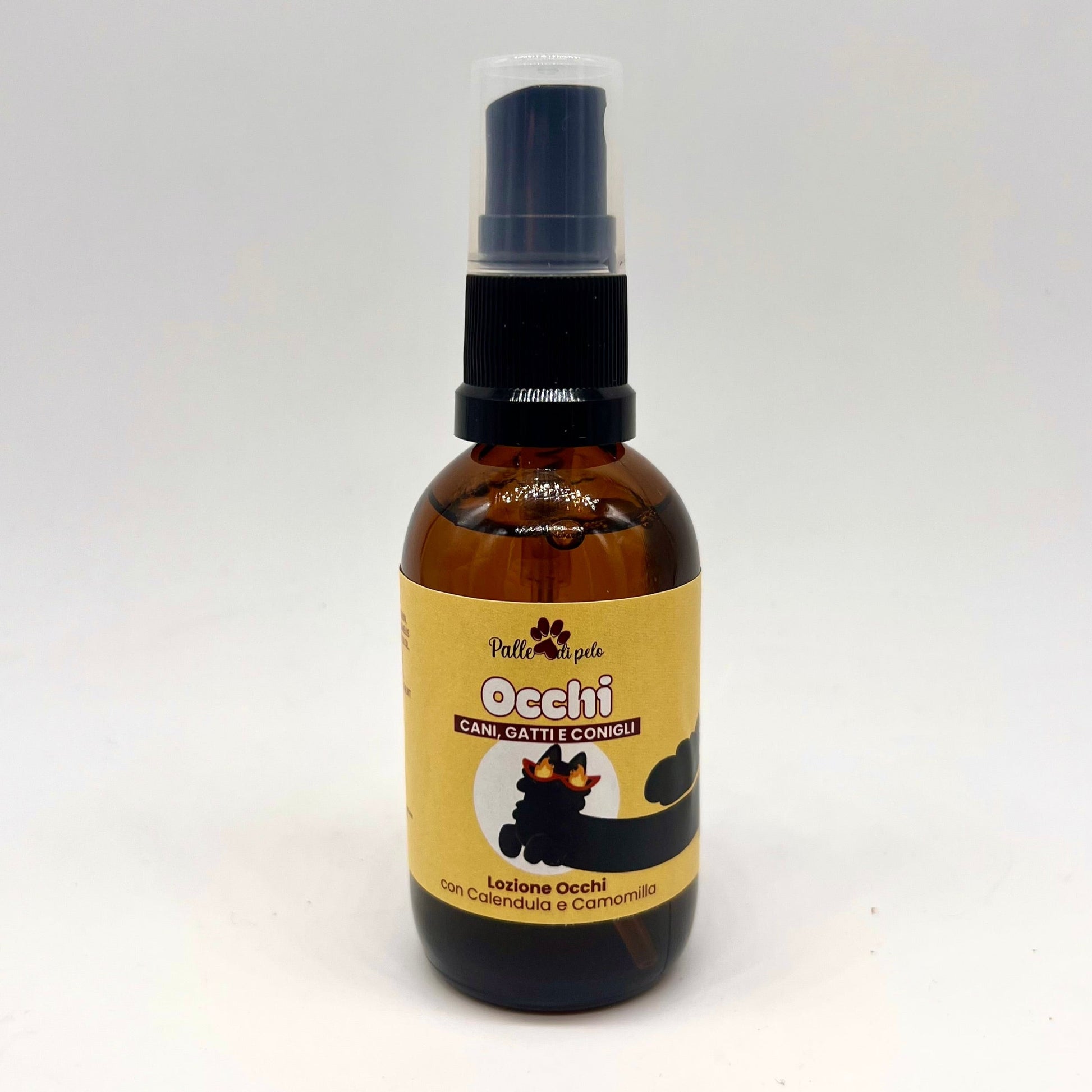Per cani, gatti e conigli a base di estratti di calendula e camomilla. Detergere lasciando la pelle idratata e morbida, non provoca allergie in quanto è senza profumazioni e ultra delicata. Ottima per la cura quotidiana di cani con pieghe e gatti tipo persiani e esotici. 50 ml