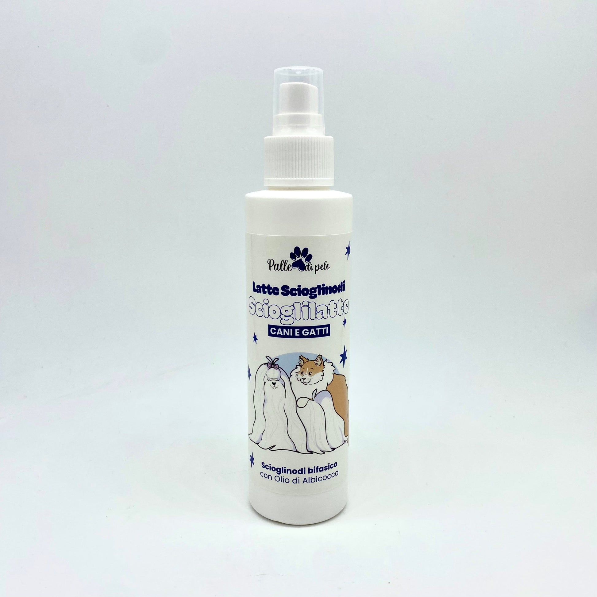 Spray bifasico per cani e gatti a pelo lungo, ideale per districare nodi complessi, piccoli feltri e mute bloccate! Grazie alla sua formulazione lattiginosa, lo scioglilatte penetra agevolmente nel nodo.