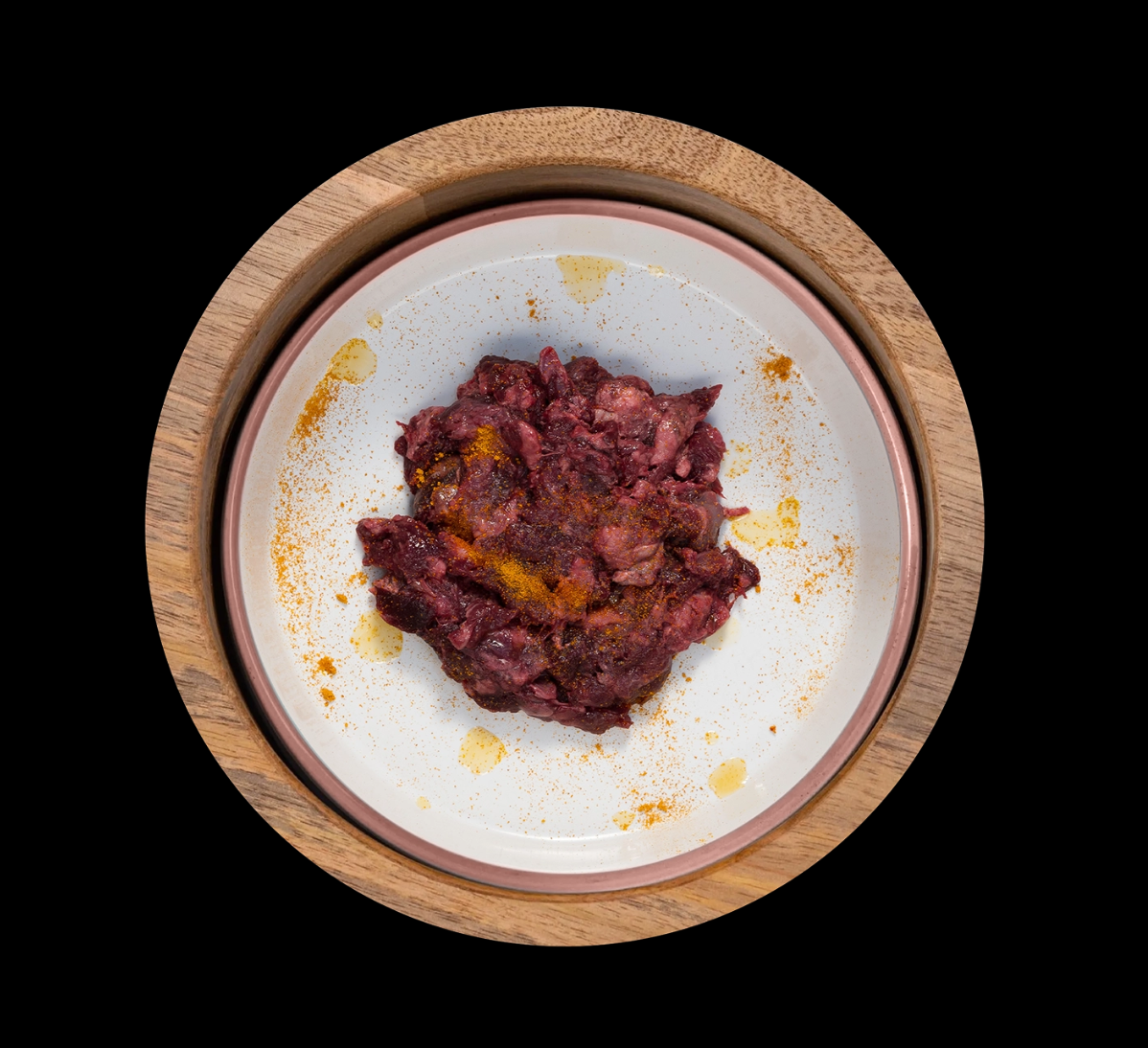 Composizione: polpa di cervo. Composizione analitica: umidità 72,63%, proteine 21,39%, grassi 4,6%.